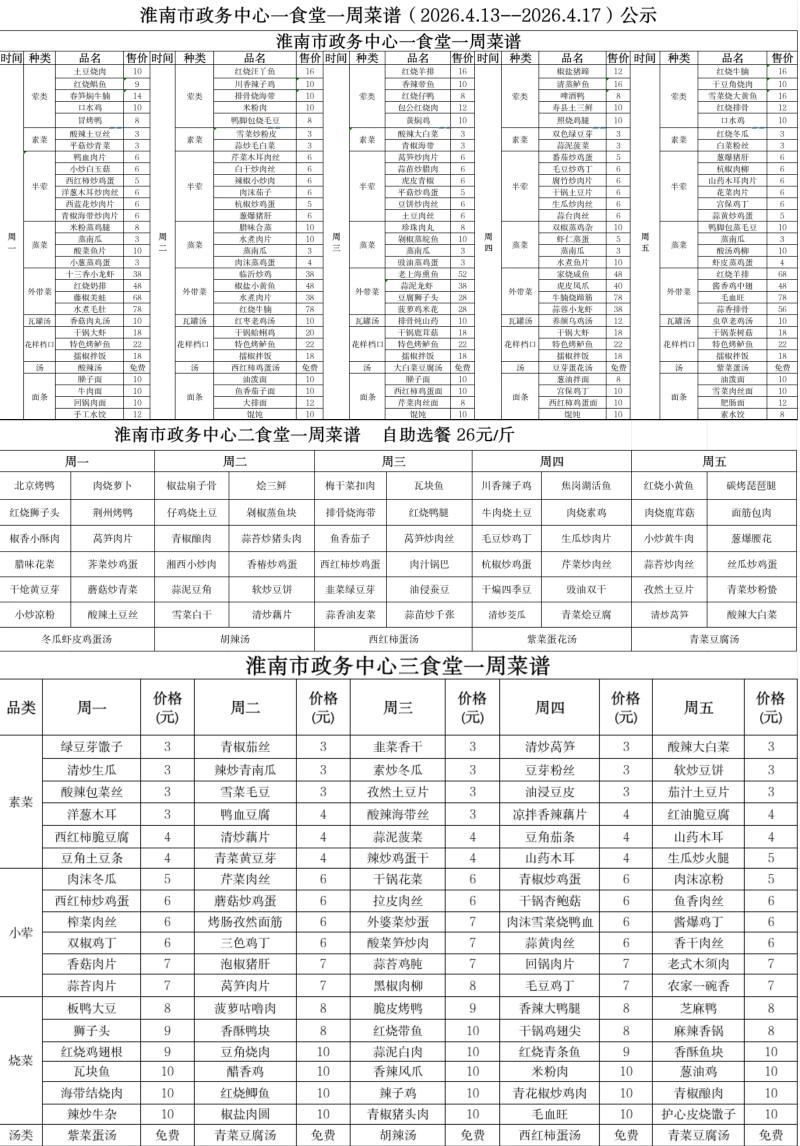 市政务中心一、二、三食堂一周菜谱(2026.4.13-2026.4.17)
