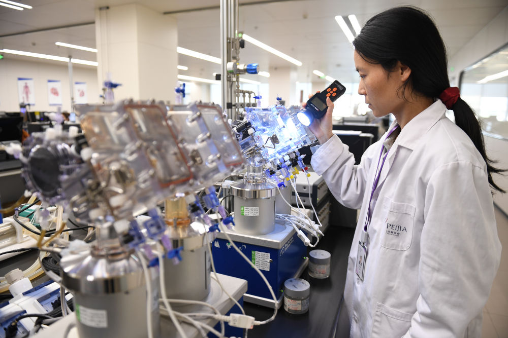 2025年3月21日,在位于苏州工业园区的沛嘉医疗科技(苏州)有限公司测试实验室里,检测人员使用频闪仪检查正在疲劳测试中的人工心脏瓣膜开闭合形态。新华社发(陈雨禾 摄)